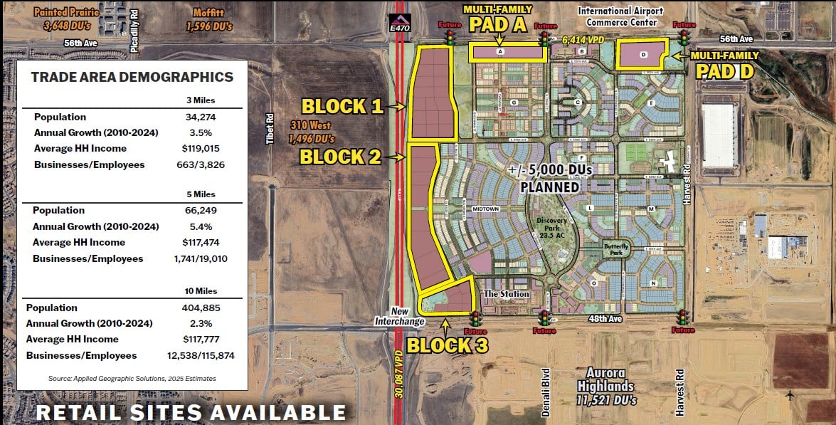 - 837 acre mixed-use development including a new interchange at 48th Avenue and E-470.