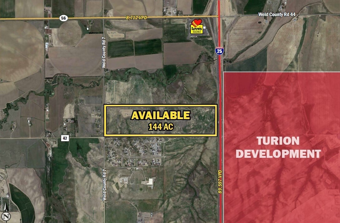 - Directly across I-25 from 2,100 acre Bill Gates Turion Development.